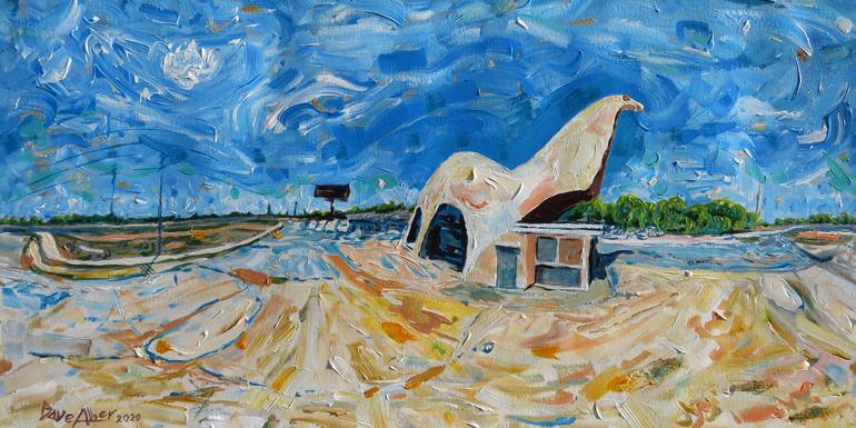 Levity: Harold’s Auto Center Dinosaur is a Hybrid VR Painting. Hybrid VR Paintings are physical paintings that may be enjoyed as AR/VR experiences. The painting can be experienced as a 360° panoramic experience on cellular devices, touchscreen monitors, Smart TVs, Google Cardboard, and other devices...