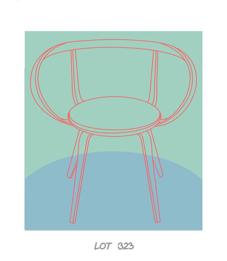Illustrated here is the 1990 Bowden painting on canvas of the iconic George Nelson PRETZEL CHAIR ca. 1952. BOWDEN has created thirteen colorations of this iconic design, this variation is Lot 323 Pretzel Chair -BLUE-GREEN. As listed in a 1990 Don Treadway Auction Catalog as Lot 323. Bowden's origin...