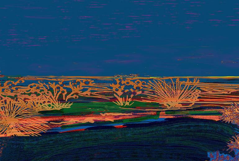 Vivid mixed media on Velvet with acrylic paint touches. Mixed media was created using photography, original painted artwork and digital illustration. Exhibit_ Artwork created for the Joshua Tree National Park “Where two Deserts Meet” Exhibition Inspiration_ This Artwork captures a view of the des...