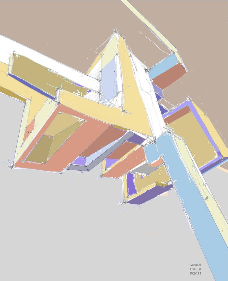 Born in Friedrichshafen, south Germany's origin of the Zeppelin, Michael Lieb works on imaginary architectural landscapes.Trained as an architect he begins with a found narrative, a myth of origin of a place or a spontaneous reference to reconstruct it into a cityscape fiction. His paintings are spontaneous mental spatial constructions leading into series like "Invisible Cities" City-Morphs", "Metamorphs", "Fold-Scapes". In his art he processes the creative improvisation technique of jazz music and architecture into painting. Michael Lieb, who lives and works in Berlin has participated in numerous group and solo shows. ,