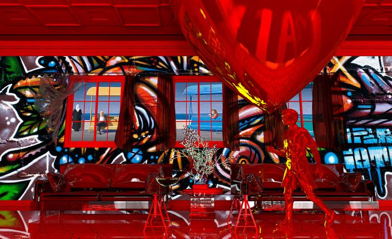 A digital creation that blends appropriated existing art and computer generated worlds. In the tradition of the surrealists My Beautiful Balloon distorts the nature of reality.