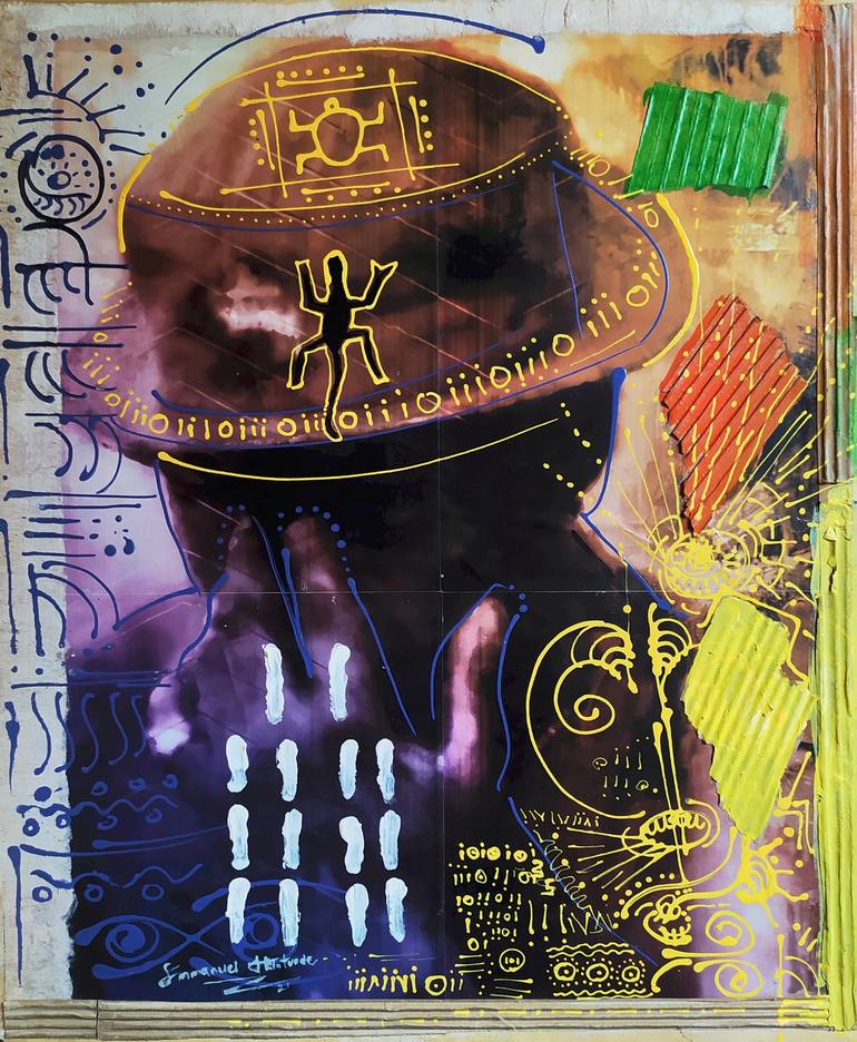 "ORI (HEAD)" is a mixed media artwork that embodies the West African concept of "Ori," the divine essence believed to guide one's destiny. More than just a head, the artwork symbolizes the spiritual compass within each of us, the source of inner guidance, blessing, and potential. Crafted with a ble...