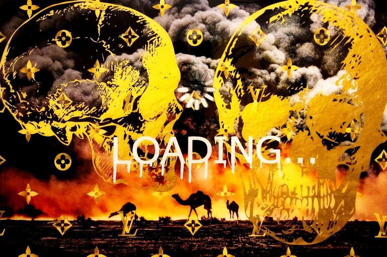 "Oil Field Disaster with Skulls" is a painting that was created on a custom wood panel with oil, ink, digital transfer, gold leaf, enamel and gloss resin. There are themes inherent in this series of work of war, wealth and corruption: morbidity and destruction next to growth and regeneration, rampan...