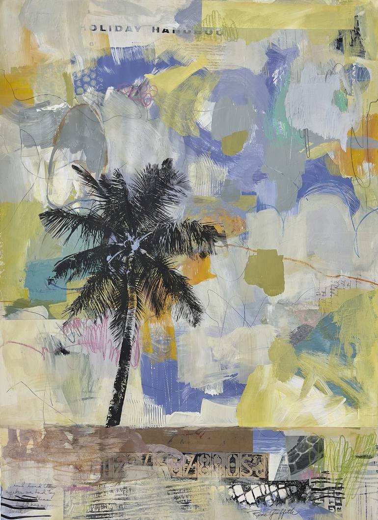 As a visual storyteller, Griffith creates images that invoke memories and feelings from the beauty she discovers in the world. Inspired by a lifelong fascination with abstract shapes, Griffith paints to capture the essence of a place to convey her thoughts and feelings. Her mixed-media art is often reminiscent of an earlier era yet is also unmistakably contemporary, intending to create modern art filled with layers of history and texture. Her work then invites viewers to complete the story by interpreting it through their own lens and experience. Griffith often uses acrylic paints, graphite, charcoal, and various collage materials while creating her work. She then uses these materials, her layering techniques, and her sense of design to create texture and depth for each piece. Thus, furthering the invitation for viewers to join her in this exploration of memory and history. For her, Griffith states, 'creating is a labor of love'.”