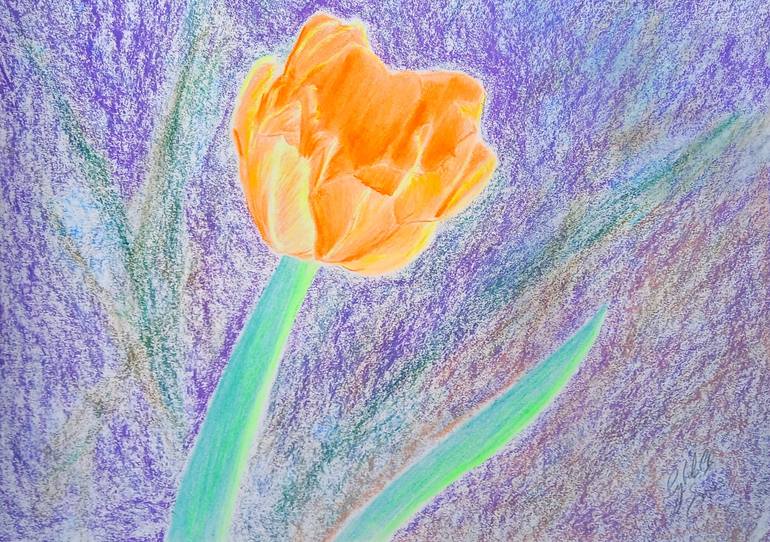 Artwork in neon colored pencils and soft pastel. My intention was to draw it only in colored pencils but as I didn't achieve the shades I wanted, I added some soft pastel. Flowers are beautiful and convey peace, so they are one of the subjects I like to depict.