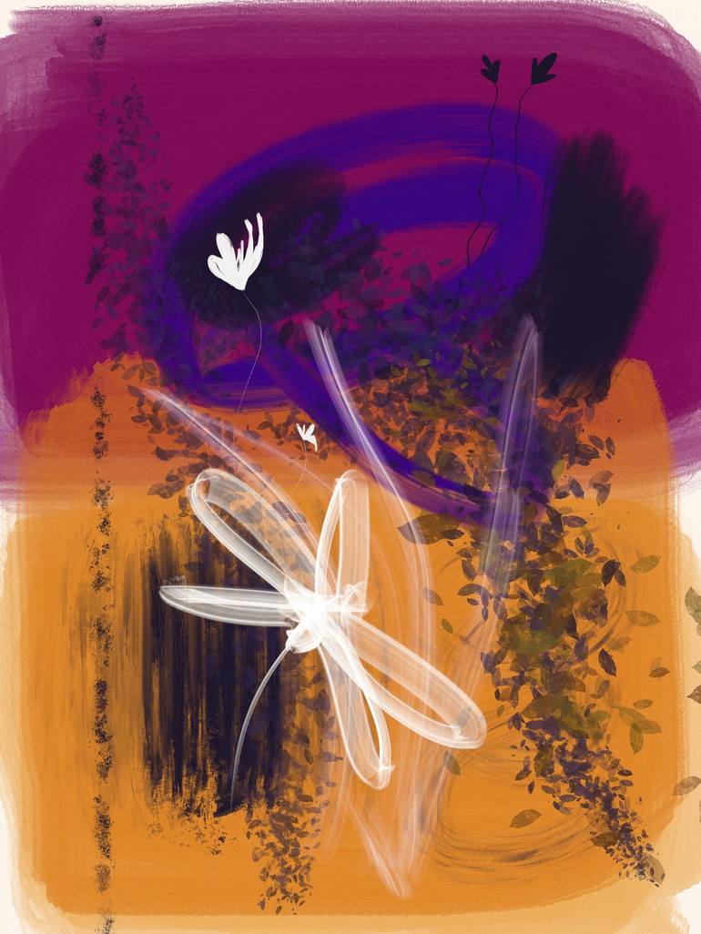 Natalie Ola is a brand name of an artist living and working in the Helsinki metropolitan region of Finland. She creates out of the comfort of her home which allows her to stay close around her three beloved children, as well as enjoy a large water pond area and massive starling murmurations over it right in front of her studio windows. Natalie works with acrylics, oil pastels and charcoal, as well as digital medium Procreate. Her works aspire to be alive with color and movement, echoing the textures and rhythms of urban life—layers of spray paint, vibrant colors, and bold brushstrokes—yet juxtaposed with organic motifs like flowers, leaves, and animal forms, which weave through the compositions like nature reclaiming its space in the chaos. Natalie is a self-taught artist that dreamed of painting early in her childhood as an outlet for deep and intense emotions. The need to create peace has always been a priority. Natalie says, “I aspire to paint concepts. The concept of partnership— how the two or more grow together, shaping up the strengths in each other and becoming more like each other while maintaining strongly defined boundaries and identity. The concept of hacking the ecstatic— it involves mending and spreading the bliss over the areas that had been previously shattered, covering and healing them, thus amending and rejuvenating the mind. The concept of rediscovering and reconnecting with the deepest of our values; perseverance in reinforcing them. A special tribute to nature—breathtaking, powerful and wonderful, often under-appreciated nature that provides its healing and restoring powers on demand, nonstop.”