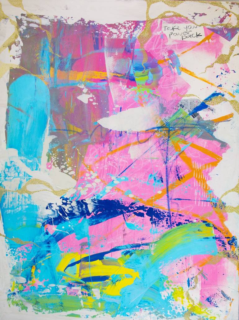 Incorporating the colors that shine through as light that sparkles love, Aida's painting depicts origami birds made of Japanese newspaper, symbolizing freedom, hope, new beginnings, strength, love, and joy. After the storm, self-love is what catches all, representing how we come back to ourselves. G...