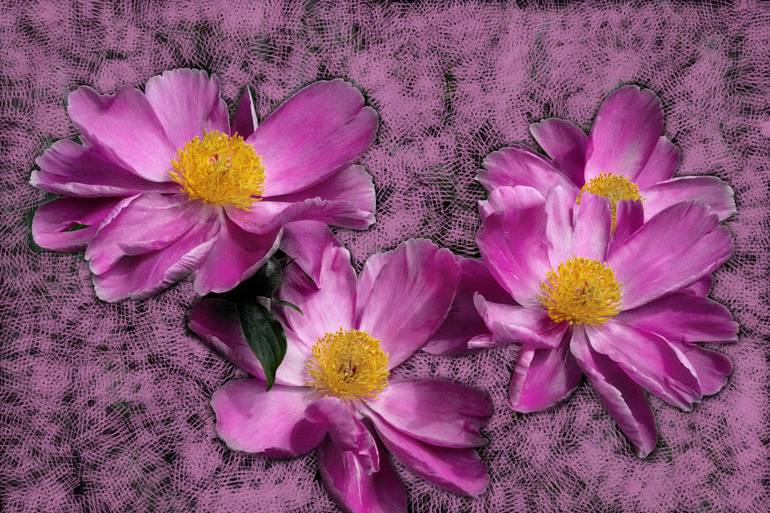 Close-up pink peony flowers on the stylish modern background. The art authentication certificate will be included or sent by post to your given address. ABOUT THE ORIGINAL COPIES PRINTING: Canvas roll with matte varnish This canvas has a matte varnish coating. Offering great protection against...