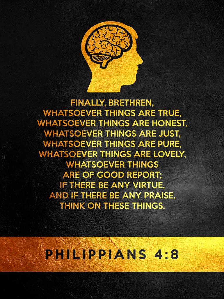 Finally, brethren, whatsoever things are true, whatsoever things are honest, whatsoever things are just, whatsoever things are pure, whatsoever things are lovely, whatsoever things are of good report; if there be any virtue, and if there be any praise, think on these things.
