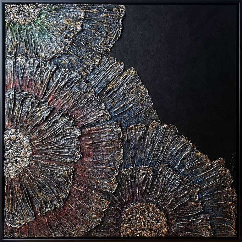 Shadow gap frames on request! QUIET ELEGANCE is a fascinating work that creates a calm yet powerful atmosphere through its color scheme and composition. It combines floral elements with an almost architectural rigor, revealing the interplay of structure, light, and symbolism. It features large, ab...
