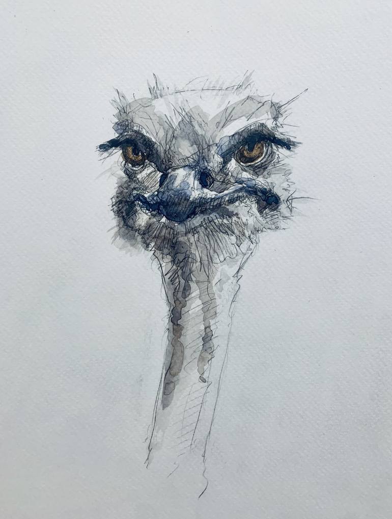 This is a mixed-media piece I did of an ostrich that doesn't look too pleased. I find humor in animals that have human-like expressions, even if not intentional.