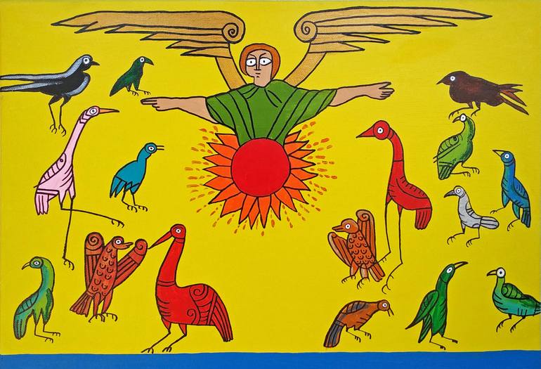Modern version of the Codex Urgellensis (Beato de Urgel) "Then I saw an angel standing in the sun, and he called out in a loud voice, saying to all the birds flying high overhead, “Come, gather together for the great supper of God." Revelation 19:17 The illuminations were probably executed around...