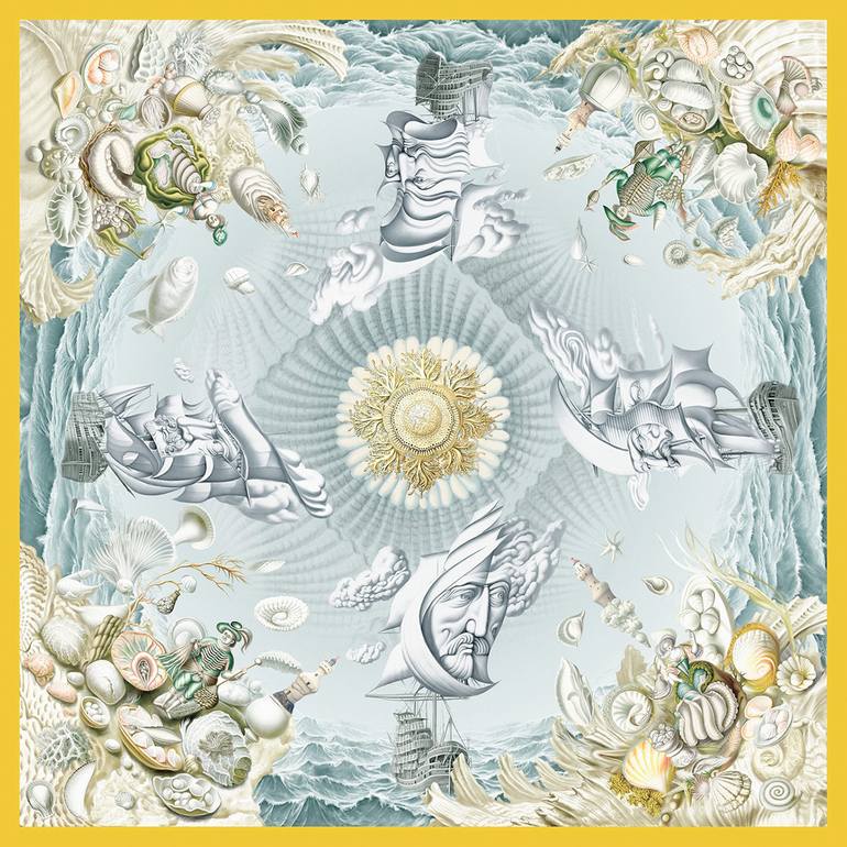 My messages in bottles, adrift on the sea, To distant shores, where none roam free. Lying on beaches, untouched by hand, In uninhabited lands, they find their stand. The prints, on the basis of which the fabric for the collection is created, are independent author's works with a pronounced fantasti...