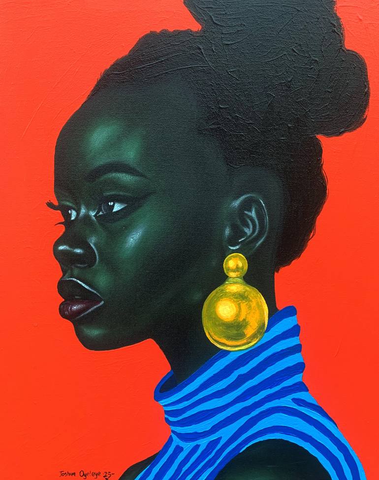 Joshua Oyeleye (b.2003), is a self taught visionary and Nigerian artists, He had his elementary education and went on to pursue his degree at the first university in Africa, known as the premier university of Ibadan, Oyo state, Nigeria. From an early age, Joshua has been captivated by the power of art to transcend conventional boundaries and provoke thought. His journey as an artist is marked by a relentless pursuit of innovation and a deep commitment to exploring the multifaceted nature of human nature through his work. Joshua artistic practice embraces the norms of traditional realism,by inviting viewers to engage with his pieces on a deeper, more introspective level. He believes that art should reflect reality more and also serve as a conduit for emotional and intellectual exploration. By embracing realism and through portrait figures, Joshua creates immersive narratives that resonate with the complexities of contemporary life, encouraging art collectors and art lovers to find their own interpretations and connections within his work. Each piece is a dialogue between the artist and the observer, a space where personal stories and universal themes intersect. Joshua's work invites collectors to not only acquire a piece of art but to become part of an ongoing conversation about identity, culture, and the human condition. ARTIST STATEMENT--------Using acrylic and charcoal and any other available medium within my reach, I strive to transcend the ordinary and delve into the extraordinary realms of human nature and experience. My artistic journey is fueled by a desire to embrace the notions of realism through figures, inviting viewers to engage with art on a deeper level. In my creations, I embrace Figures and expressions as tools to express complex ideas and feelings. Each piece serves as a narrative tapestry woven from my observations, experiences, and reflections on contemporary life. I invite collectors to explore these narratives, to find their own meanings within the vibrant colors and dynamic forms that characterize my work. In essence, my art is an invitation to explore the intricacies of existence—to see beyond the surface and embrace the profound connections that bind us all.