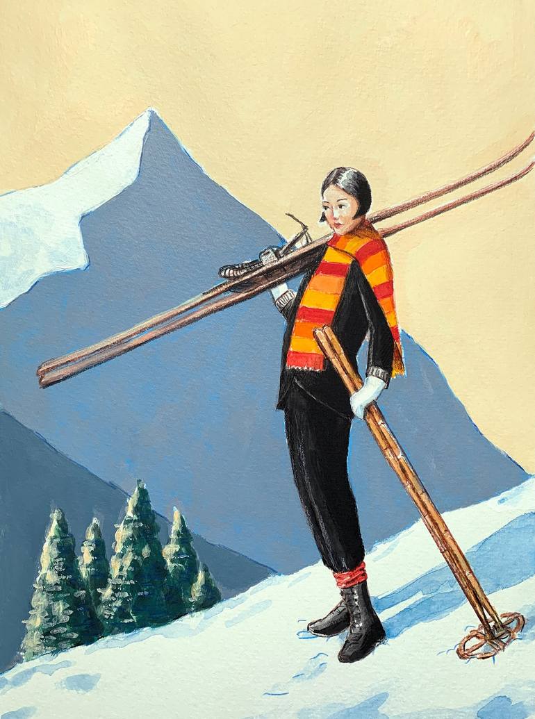 I love painting fashionable women, especially fashionable sporty women. I hope viewers will gain a sense of freedom and strength when viewing strong, confident women like this one. I appreciate retro or vintage images and love to paint them.