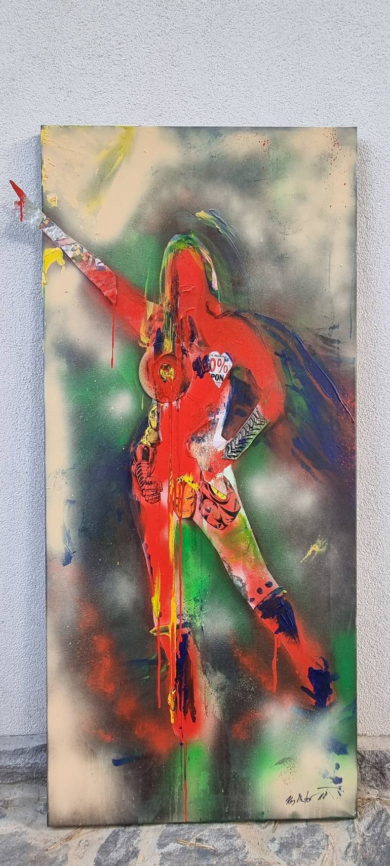 Super woman Mixed media on canvas: acrylic,iron aluminium,collage(paper magazine),paint brush. Dim.: 70 cm x 140 cm