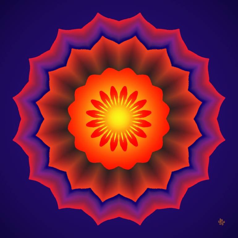 Digital painting in my series "Symmetrical compositions". In these paintings I explore the possibilities of symmetry to achieve an aesthetic and harmonious effect. With symmetry I communicate in a joyful mood which goes beyond words.