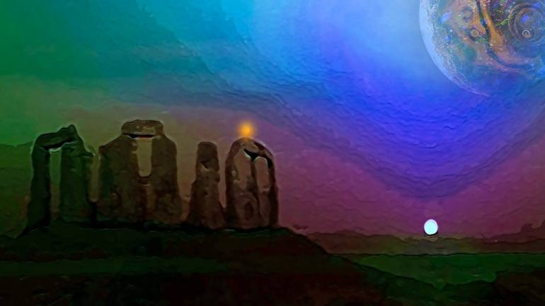 This mixed media image developed from the thought that as our technology advances and our capabilities increase, the human race will begin to move out into the solar system and eventually beyond...but I have this feeling that no matter where we go or how far our travels take us, we will continue to ...