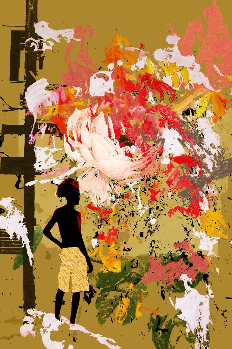 I want to talk about beauty, feelings, life stories, and contradictions—everything that makes us human. The central focus of my creations is the emotions that are omnipresent on this planet, regardless of creed or language; even before we learn to speak, we already demonstrate emotion. I explore not just the 'noble' feelings, but any and all feelings expressed in the contemporary world, amidst the intersections of social media, television, film, and music. Conveying strength, beauty, and everyday life through characters and their clothing, I use abstraction to show that reality is malleable. It may take decades to change, but it is real. The flowers present in all my works—whether featuring a character or a piece of clothing—convey emotions, dreams, and the hope of changing the reality of a community or oneself, recovering one's beauty and self-esteem. My artistic motivation stems from a dream common to every child of my social background: to change our family's situation and give them a better life. In art, I found this opportunity. Initially, I created to deal with my reality and my disillusionment with the academic world. Art called to me; I had to do it, even without fully knowing what I was doing at first. Nowadays, my art deals with emotions by creating images of people who, in Brazil's not-so-distant colonial past, were denied them, producing anguish and pain in their bodies. I recognize myself in an environment that remains largely unchanged—both at the university I attended and when walking down the street—feeling a certain strangeness in places where I still feel I don't fit in. My art is a way of resisting this. Resisting and reclaiming my humanity is what motivates my creation, even though during the colonial period this was stolen from my ancestors: Native Brazilians—the original people of South America—and Africans brought here against their will. My proposal is to work with the emotions of the body marginalized by colonization, creating an image that represents the beauty of these bodies, their contradictions, and their hopes. These are the same bodies described by colonizers as 'savage,' devoid of feelings or emotions. I portray how culture intersects with us and interferes with how we interpret and deal with the emotions that arise. Even if our hopes and dreams are ripped away or manipulated by algorithms, television, or other forms of communication, the emotions that arise are still as present as the dead flowers in my work.