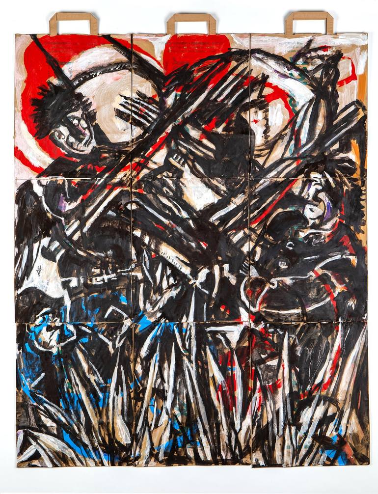 "The suffering of others - Battle for Everything" Das Leid der Anderen - Schlacht um Alles Painted paper bags become carriers of image and meaning. They speak of war, destruction, pain – and of what remains when everything seems lost: memory, vulnerability, and the longing for forgiveness. The surfa...
