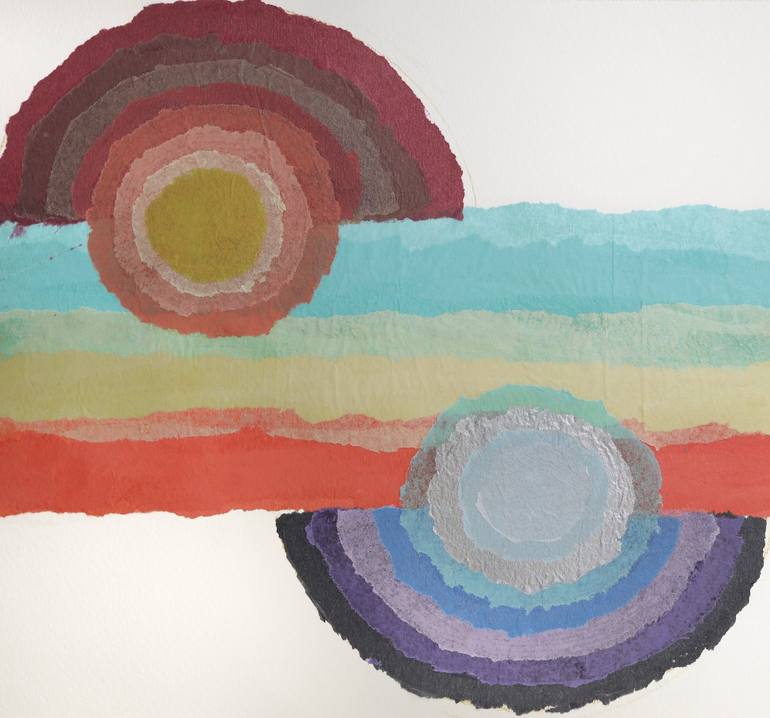 This painting is inspired by the nature, the sun and the moon and the kite paper shows the layer of the painting, the the colour contrast used to show the layer and this is looks so simple and so elegant