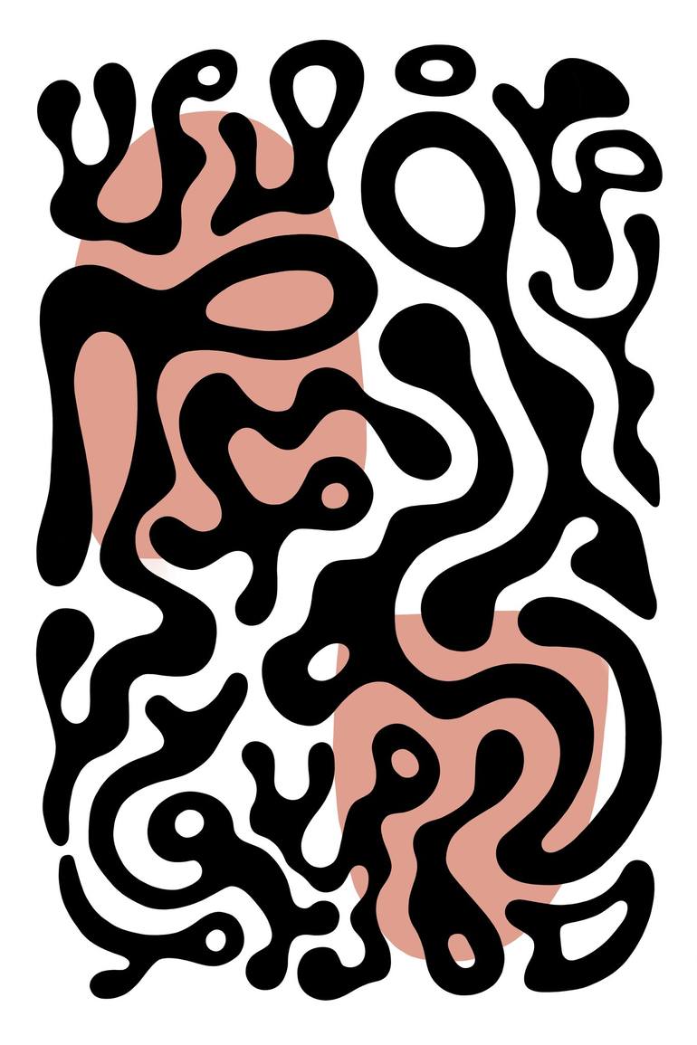 Modern abstract design with flowing, dynamic shapes. A mix of rhythm, floating figures and surreal movements can be discovered in the works of the lively "Twisted Beats" series. The high-contrast painting creates a captivating tension. Experimental decorative art with pop art character. Available in...