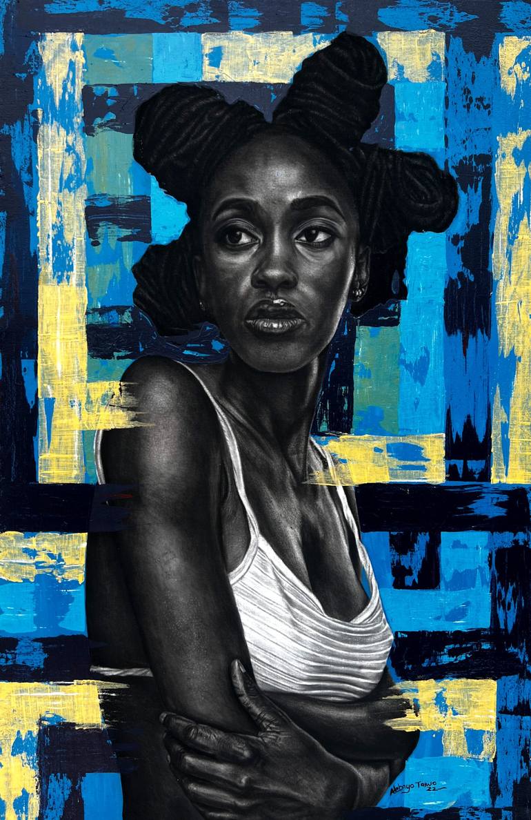 Background Adebayo Taiwo, a native of Kwara State, Nigeria, was born and raised in Oyo, Oyo State. His artistic journey began during his junior school years when He apply for a workshop at Femo Art Studio in Oyo town. Since then, he has relentlessly pursued his lifelong dream of becoming an artist, fueled by passion and determination. After some years of workshop and mentorship at Femo Art Studio, Adebayo continued to work from home while awaiting admission to Ahmadu Bello University, he was given admission and he's currently studying to acquire his bachelor's degree programme in fine art in the prestigious Ahmadu bello University Zaria. Artist statement My art serves as a window into the stories that define us—the memories that linger and the moments that shape our existence. With each brushstroke of acrylic and oil, I paint the highs and lows of our shared human experience. But it's not just about the visible canvas; it's about the abstract backgrounds—the chaos and calm, the noise and silence—that weave the fabric of our lives. These backgrounds are more than mere splashes of color; they represent the unseen world behind our stories—a world filled with love, struggle, and our deep connection to nature. When you stand before my canvases, you're invited to explore your own journey mirrored in the colors and shapes. My mix of materials—from the smoothness of oil to the texture of acrylics—symbolizes the resilience and strength I carry within, even when faced with life's challenges. Each painting becomes an open door, inviting you to step in and discover your own narrative within the vibrant hues and intricate patterns. Techniques: The abstract backgrounds in my works hold deeper significance than mere aesthetics. Some may wonder why I choose these intricate patterns. The answer lies in my unique approach. Using flat, expired ATM cards, I apply background paint, deliberately creating lines and breaks. These fractured lines, often crossing in contrasting colors, add emotional layers to the artworks. They symbolize the intensity of memories—the passion of past experiences—and the complexity of personal narratives. The abstract patterns themselves mirror the chaotic and unpredictable nature of our world. Through color contrast and deliberate composition, I weave a narrative that transcends the visible canvas. My art invites you to step beyond the surface, to explore the threads connecting us all—a vibrant tapestry of life, waiting to be unraveled.