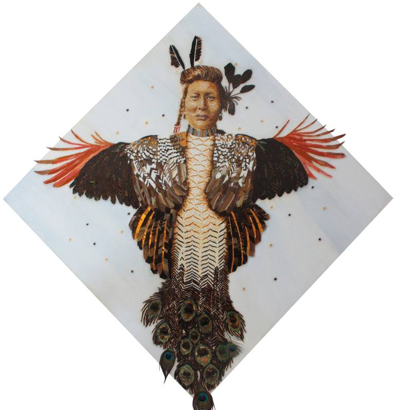 Work created in collaboration with the artist Michele Dibari. vanitas represents the allegorical image of vanity masterfully created with the mosaic technique, including non-traditional materials such as copper and feathers.