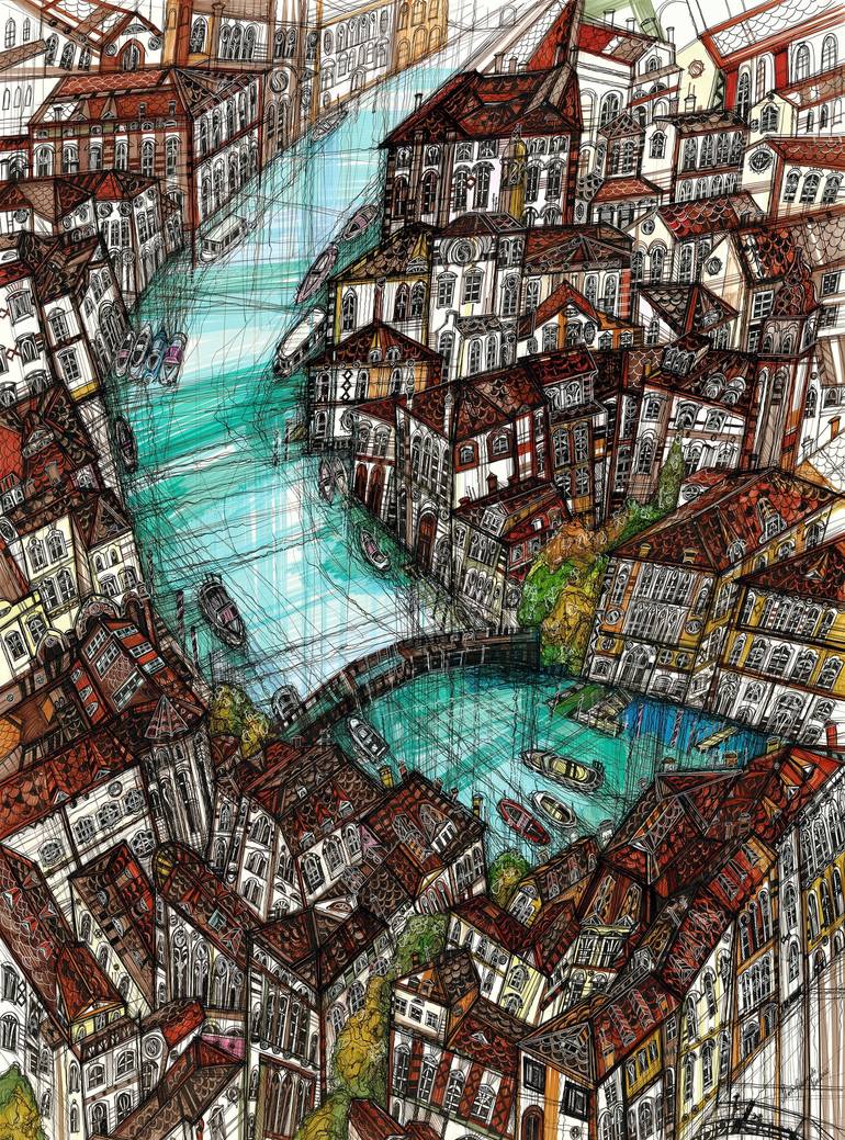 Please note! This artwork is on my solo exhibition now and will be available in June. Italy is one of the most inspiring places for me. My artwork Venice belongs to my series that is dedicated to this beautiful country. I created this artwork using acrylic markers, liners, brushes on a cardboard (s...