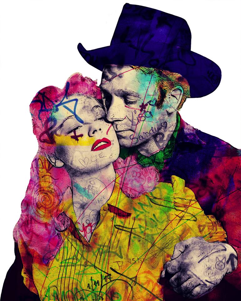 Hello, I'm a visual artist. I working photos, collage and colorization. I have a great sensitivity for the past, I like working on old documents, old photos of couples, or celebrities, and I color them with colors that are as washed out as flashy. I work on these documents by merging them with textures that I photographed. Textures, inscriptions, texts, signatures ... taken often during trips. There are inscriptions all over the place, from bridges in Paris, in Florence, to the Rialto bridge, in South America, or even toilets in bars deep in the Balcans. I like to put all these stories together in one piece. Find consistency among all these elements. The cartoons are oil paintings, the other works are printed on diasec, its exceptional quality and incredible rendering. The photo is printed on HP Premium 250g photo paper, a 3 mm thick aluminum plate, on which your photo is glued, and a 2 mm Plexiglas plate, which reinforces the whole. Elegance, modernity and high quality. I work with Absolute art gallery (Belgium), and the Roy Sfeir gallery (Paris). curator@saatchiart.com