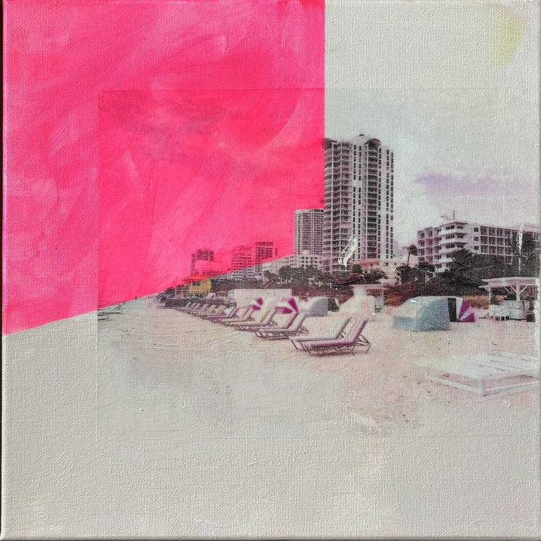 A trip to Miami inspired this piece. The Miami heat is represented by the block of neon pink. Nostalgia is apparent through the imperfection of the image. I love the way the inkjet transfer makes the memory appear quite old, though it's from March of 2020. That time is both four and forty years ago.
