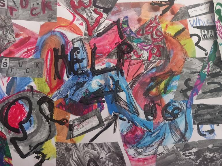 This piece of work is inspired about feeling lost and stuck trying to pursue an artistic career in this society,wanting to pursue our dreams but have the constant fear of needing to make enough money,the viewers will relate to this and feel it on a deeper level,this was created by photocopying an or...