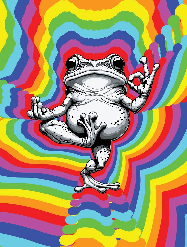Meet the Zen Frog! This design combines humor and mindfulness with a quirky touch. Perfect for those who love yoga, meditation, or just a good laugh. The intricate black-and-white details make it stand out on apparel, home decor, and more. "Zen Frog Masterpiece" is a humorous and highly detailed ar...
