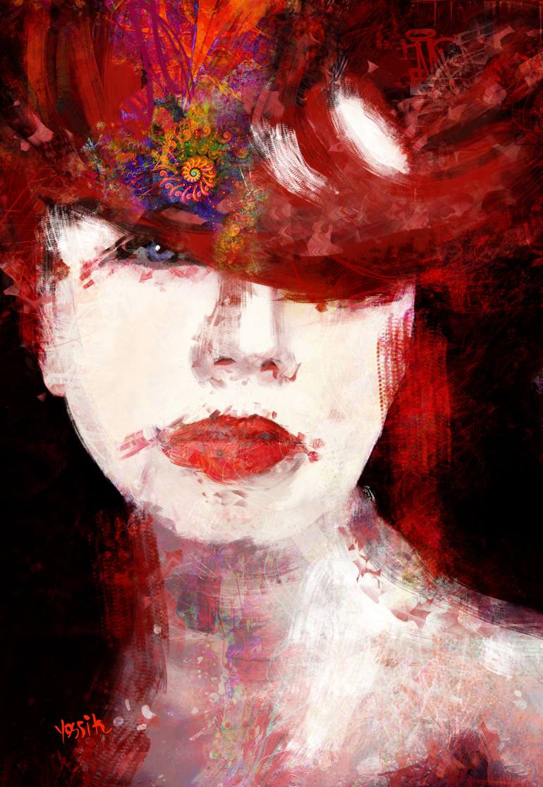 When I am walking around outside in the nature, by investigating my path and my creativity, there is suddenly a spark that catches my eyes, that I can reflect to its shapes, texture, and to its colors. And this starts a creative process in me. Then I will search for a female figure with a unique loo...