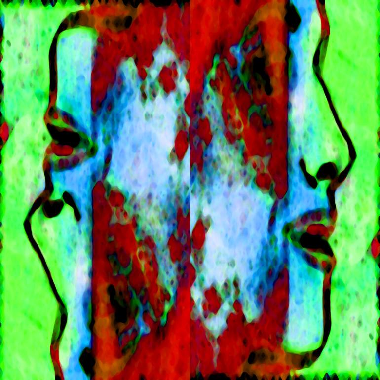 Woman. Face. Lips. Nose. Colors. Shapes. Green. Red. Diamonds. Experimental. Mirrored. Flip. Symmetry.
