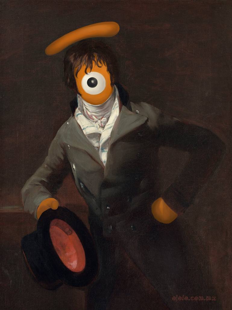 This captivating limited edition mixed media artwork, "bartolomeojo sureda y miserol," is a digital intervention on a public domain painting by Francisco de Goya. Printed on HQ semigloss paper, this small piece combines elements of conceptual art, illustration, pop art, surrealism, and portraiture i...