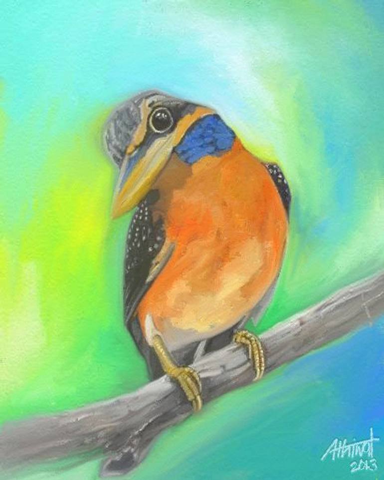 Bird painting on T-shirts. Paint more background with digital painting techniques.