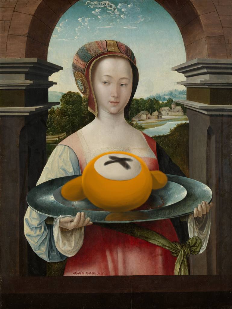 This captivating mixed media artwork, "Salome with the Ojolo's Eye," is a limited edition print that breathes new life into a classic subject. A digital intervention on a public domain painting, this piece is printed on high-quality semigloss paper, resulting in a vibrant and lasting image. The art...