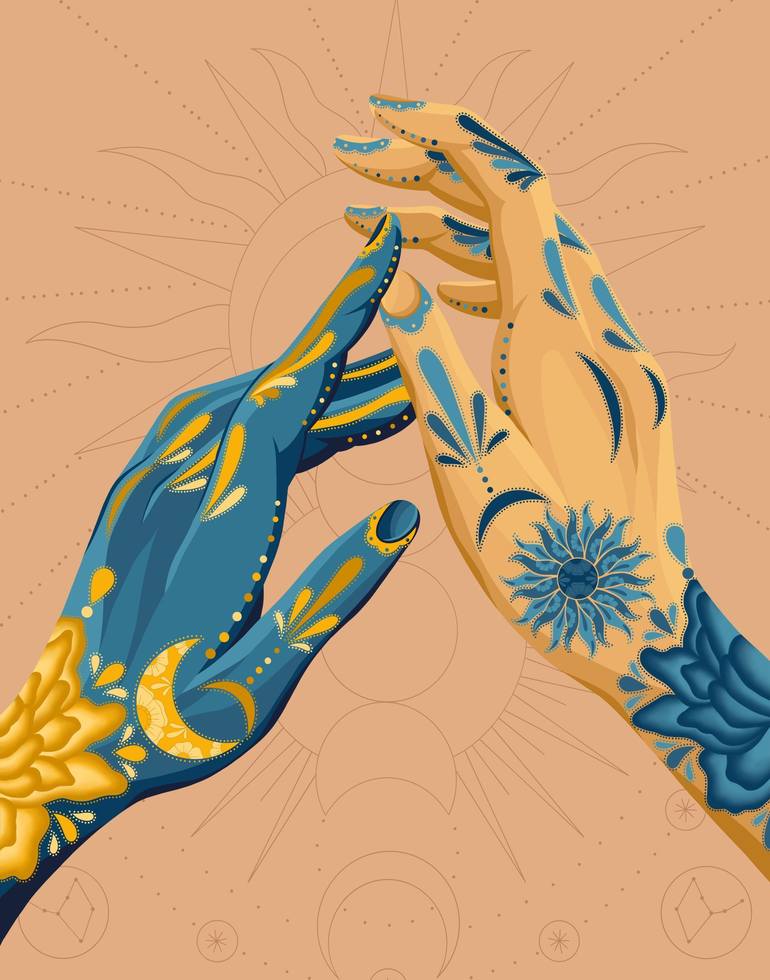 a representation of the sun and the moon, influenced by the patterns found on calaveras (sugar skulls)
