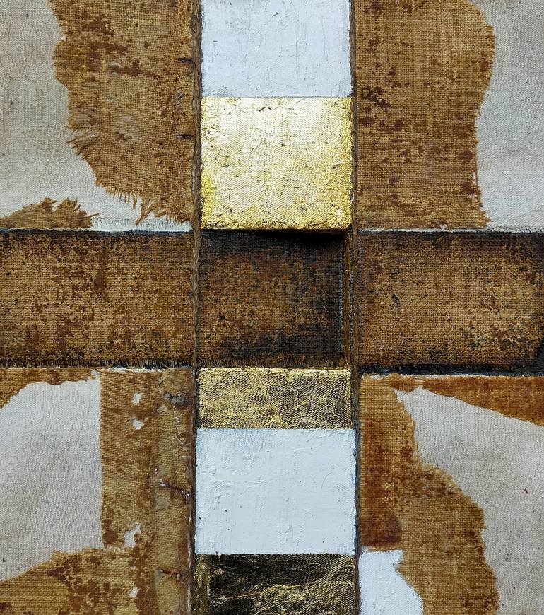 I started this series of works titled "varie azioni sul tema" (Various Actions on the Theme) about 20 years ago. They are small-sized pieces with a common geometric element, a square in the center, where I insert and recycle leftovers from my studio work—pieces of old canvas, antique papers, and any...