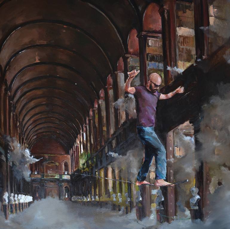 In the context of 0110, Trinity College Library in Dublin is the place where all the knowledge is stored. 0110 reveals an interactive duality between spontaneity (tightrope walking) and knowledge which brings an ever-present balance of existence. Furthermore, it leaves a wide space to explore the in...