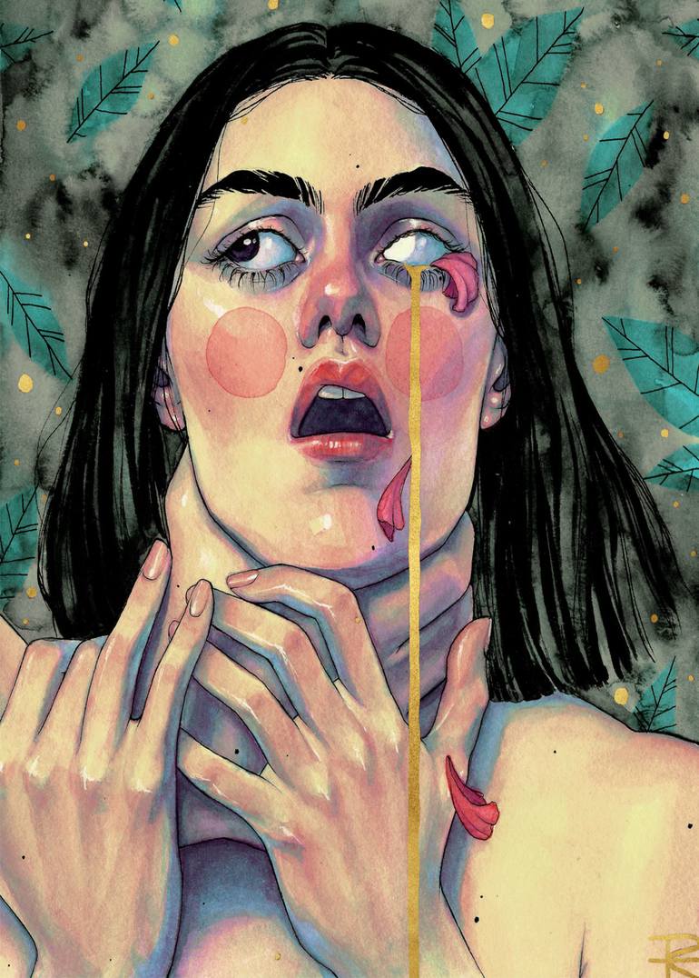 Roselin Estephanía (March, 1994), born in Barquisimeto, Venezuela. With more than a decade of experience, she is a Venezuelan artist focused on watercolor. Her style tends to blend surrealism with realism in a mix of pure fantasy. Her collectors are attracted to her unique aesthetic in her original paintings: "her watercolor paintings seem to come straight from her heart". For Roselin, her art is her most faithful way of transmitting both the beautiful and the saddest parts of life. She attended the University of Zulia to study Plastic Arts, she finished her specialty mention in drawing. In the beginning it was difficult for her to sell her original paintings, as she felt very attached to them, feeling them very personal, but the fact that there are collectors all over the world buying them makes her feel that her message is understood, and that what she is trying to communicate is appreciated.