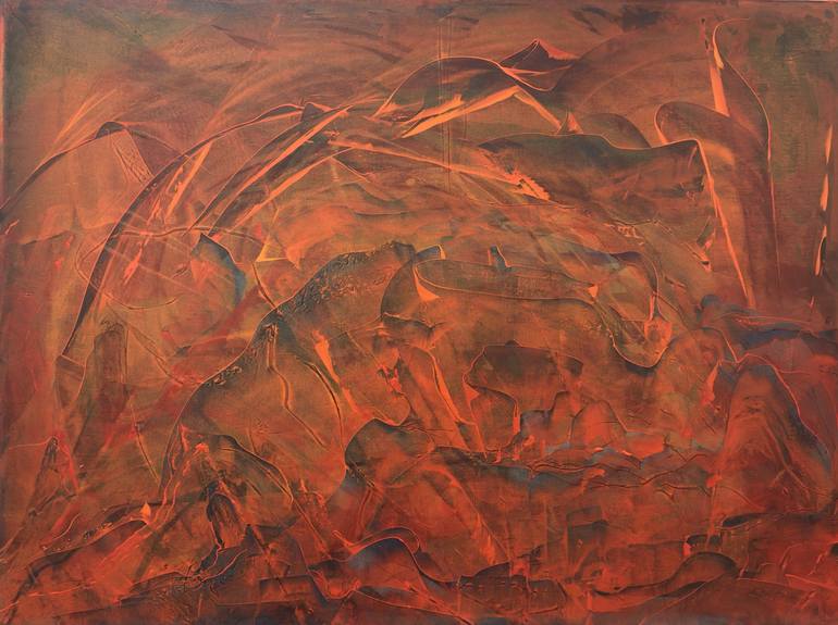 My work is non-objective. Please read my bio for more info regarding my process. Finished with an imperceptible brushed on matte clear coat that brings richness to the colors and protects the piece.