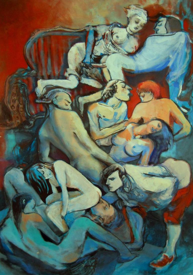 Illustration to '120 Days Of Sodom' by Marquis de Sade. Acrylic and charcoal on paper.