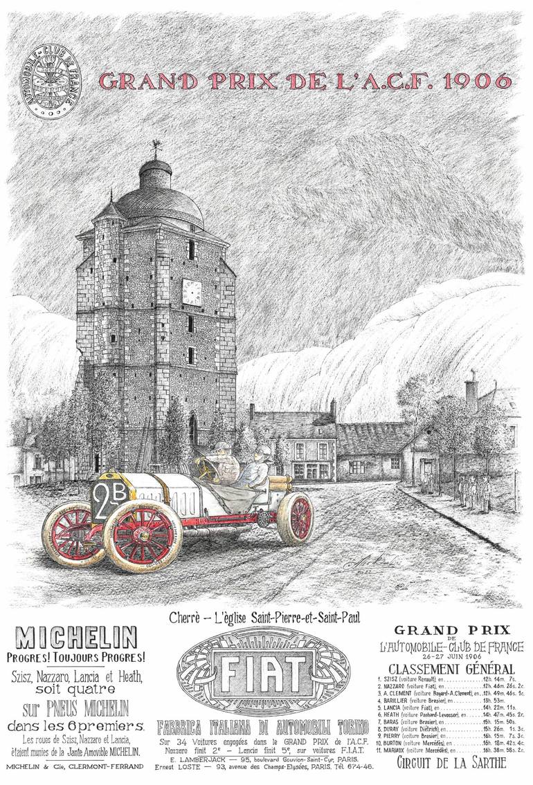 A Triptych artwork ‘The First Ever Grand Prix’. Part 2 of 3 - ‘F.I.A.T. - Felice Nazzaro’. Overall triptych size 114x56 cm. Many details are hidden all over the drawing. My artworks are not copies of old photographs. Work on one picture usually takes up to 2 months. Many hours of research and refer...