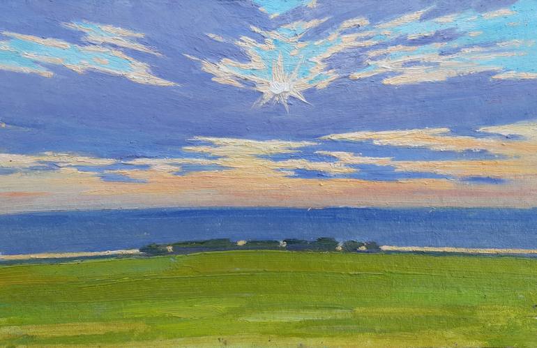 Painting by Kuchura Miroslava bye at the Saatchi. This painting takes us to the vast landscapes of the Bakota valley in Ukraine, where the wind seems to bring the scene to life. Light brushstrokes and dynamic lines convey the movement of air sweeping across the green fields and mountains on the hor...