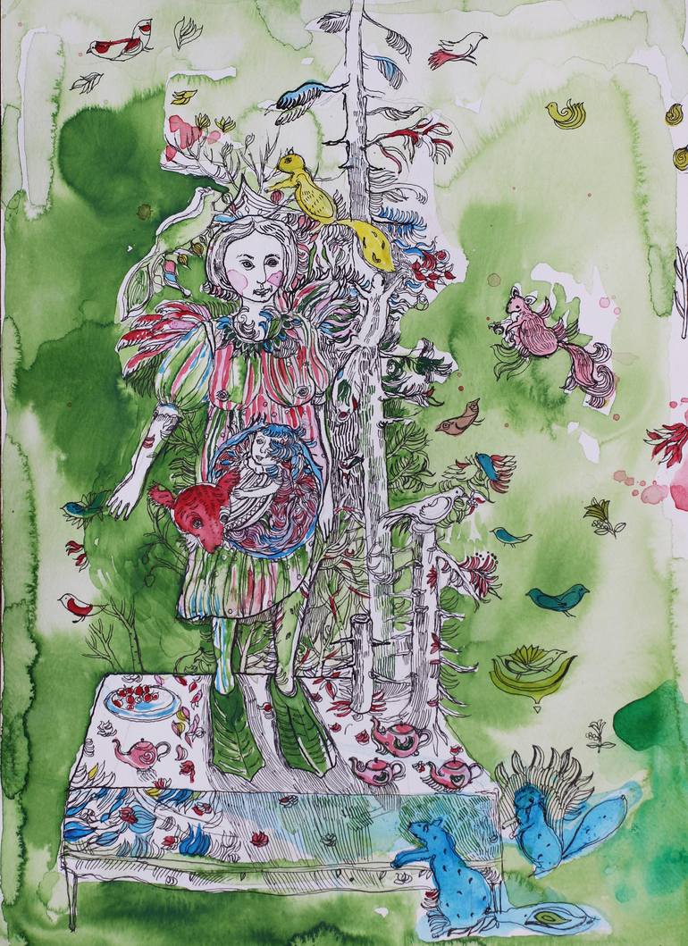 Ink and watercolour on paper. Mixed media artwork. I am a professional artist, creating in a wide range of artistic forms, such as illustrations, drawings, paintings, jewellery, stained glass and so on. In my artworks I tend to explore the inner aspects of human life put against the backdrop of the...