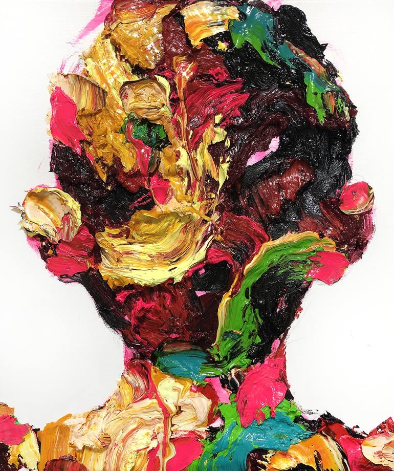 Complexity of human emotions, which is hard to be defined in one word, is left as momentary traces on the empty space, after the long agony of the artist's inner side. The ?complexity"˜ is a kind of action which is come by completely absorbing and assimilating with the artworks while he holds the brush in a brief, and from the moment that the colors arrive on the screen, and the shape is built, the fear of blank space is collapsed, and his inner side's fear and the ecstasy from the fear coincide. This moment is the process that the artist takes out something from his inside, and also is the climax of the energy that he creates the pieces." (Myung-Jin You, Curator)