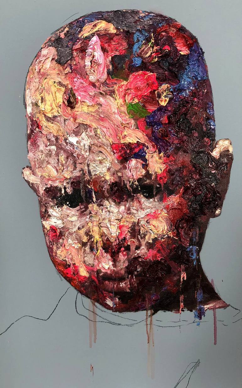 Complexity of human emotions, which is hard to be defined in one word, is left as momentary traces on the empty space, after the long agony of the artist's inner side. The ?complexity"˜ is a kind of action which is come by completely absorbing and assimilating with the artworks while he holds the brush in a brief, and from the moment that the colors arrive on the screen, and the shape is built, the fear of blank space is collapsed, and his inner side's fear and the ecstasy from the fear coincide. This moment is the process that the artist takes out something from his inside, and also is the climax of the energy that he creates the pieces." (Myung-Jin You, Curator)