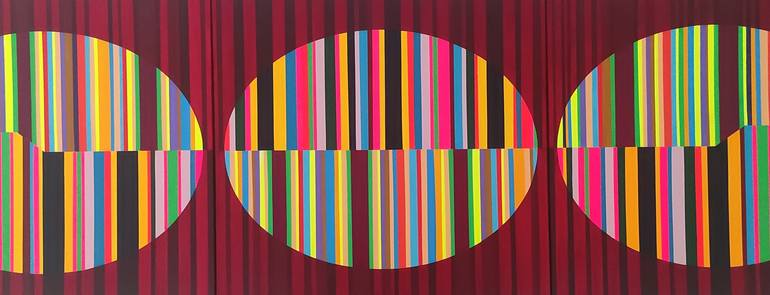 My work has been created in series at different periods. My first works are city walls and posters in photo realistic style. It is all oil painting on canvas. The second term is wall abstractions, acrylic on paper and acrylic on canvas. My recent works consist of geometric abstractions with a spiritual theme.